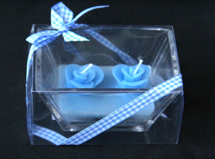 Bougie parfumée sous forme de fleur de couleur bleu ciel avec ruban décoratif - REF. 25897 (1.75 €)