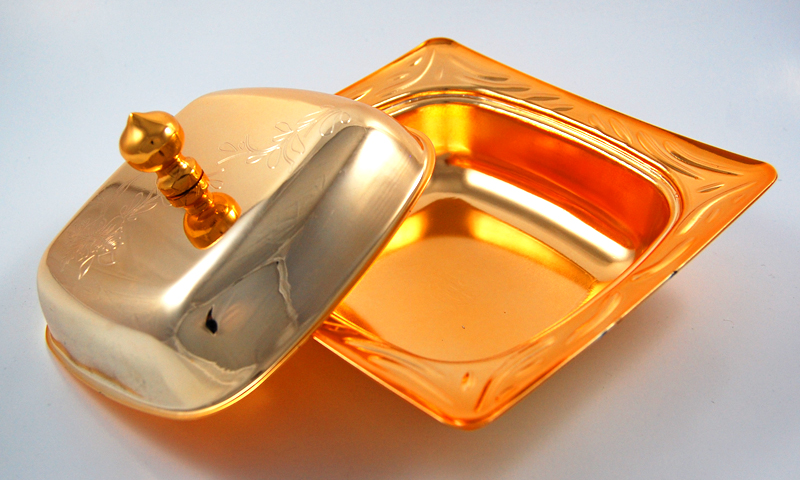 Sucrier, boite à bonbon (Récipient métallique doré avec son couvercle) - REF. 24819 (12.90 €)