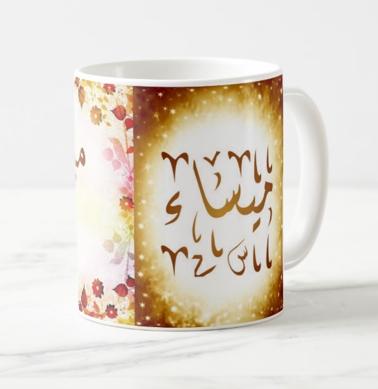 Voir l'ensemble des mugs dédiés au prénoms calligraphiés en arabe (Mugs prénoms arabes musulmans masculins - Mugs prénoms français)