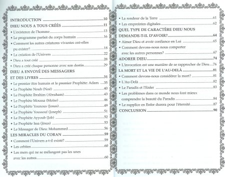 Ce livre rédigé dans un style simple et accessible à tous, parle de la puissance de Dieu et de son infinie connaissance. Les informations, tirées du Coran, concernent les phénomènes naturels et sont en parfait accord avec les données scientifiques dont on dispose aujourd'hui.