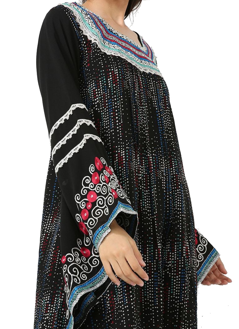 Robe orientale longue avec belles broderies en coton pour femme - Couleur Noir - REF. 33448 (25.00 €)