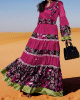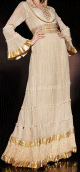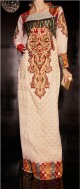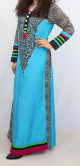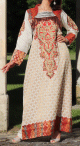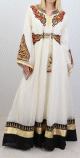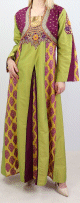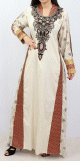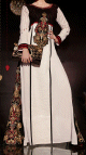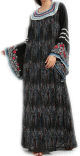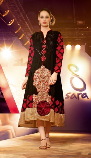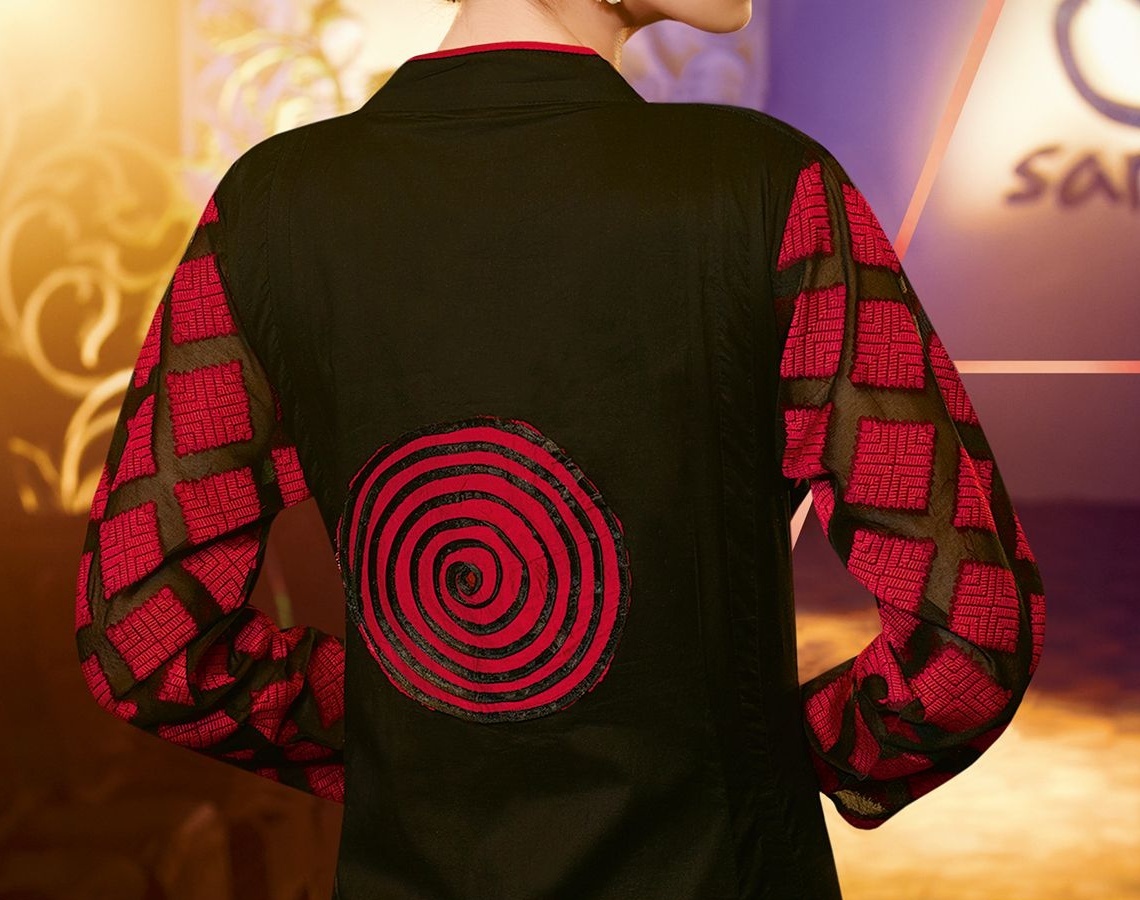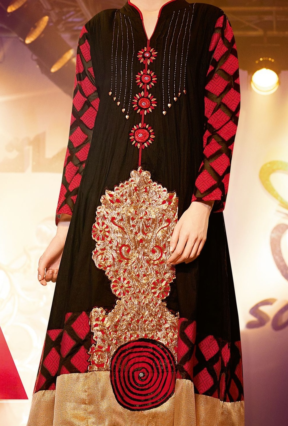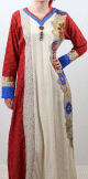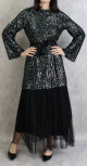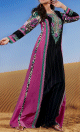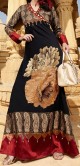 Robe de soirée noire et rouge avec très belles broderies en fil doré et argenté.