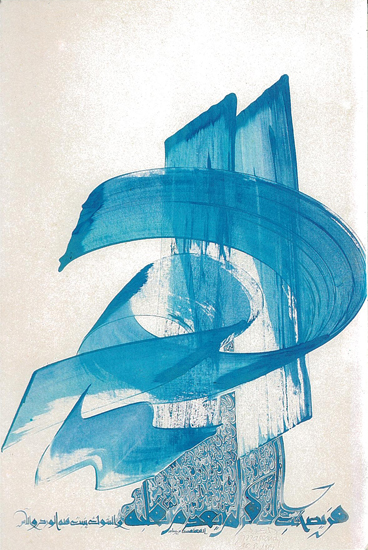 Carte postale calligraphique arabe "Celui qui s'adonne au temps n'est pas épargné de ses soubresauts. Dans les épines poussent les roses et la myrte." (Citation de Al-Mouatamed Ibn Abbad).