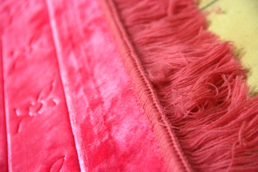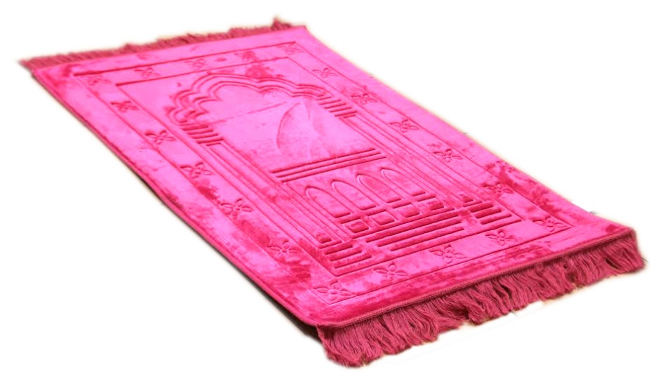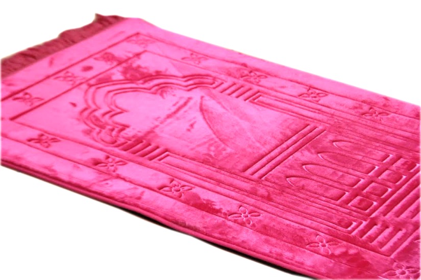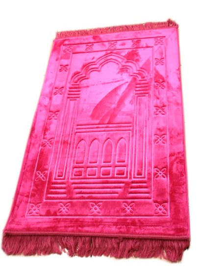 Tapis de prière adulte unie avec motifs - Ultra-doux type velours - Couleur rose bonbon - REF. 41093 (6.90 €)