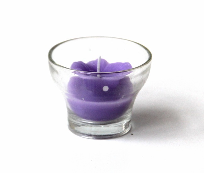 Bougie parfumée sous forme de fleur de couleur mauve avec ruban décoratif - REF. 25896 (1.75 €)