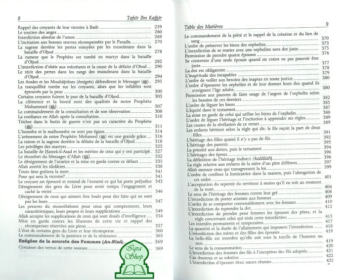 Le Coran est la révélation des propres Paroles d'Allah pour guider ses créatures. Le Coran est la source fondamentale des Enseignements islamiques. Il est donc nécessaire pour chaque musulman de le comprendre correctement. Tafsir Ibn Kathir est l'exégèse la plus renomée et la plus acceptée dans le monde entier. On y trouve la meilleure présentation de Hadiths, histoires et commentaires des Oulémas.