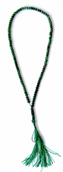Sabha (Chapelet) 99 perles de couleur vert avec motifs dores