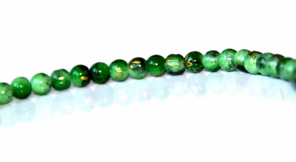 Sabha (Chapelet) 99 perles de couleur vert avec motifs dorés - REF. 25955 (3.90 €)