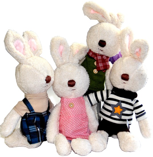 Ces jolis lapins, avec leur vêtements garçons et filles, ont une très belle finition et une couture de qualité, ils ferons la joie de vos enfants.
