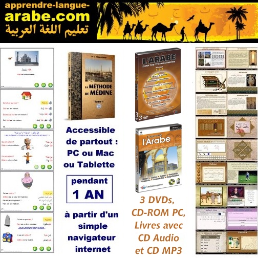 • Possibilité de poursuivre l'apprentissage sur le site Apprendre-langue-arabe.com (nouveaux cours, exercices, jeux, etc.)
