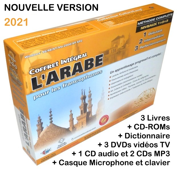 Nouveau Coffret intégral 2021 (Livres + CD-ROMs + DVDs + CD audio et MP3) : L'arabe pour les francophones (Niveaux 1+2+3) - REF. 2602 (99.00 €)