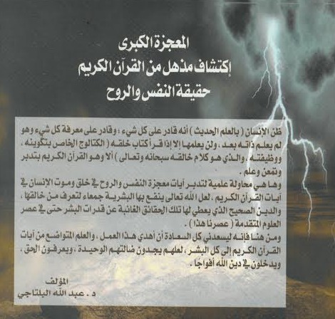 من آيات الإعجاز العلمي فى القرآن الكريم المعجزة الكبرى معجزة النفس والروح فى خلق وموت الإنسان فى القرآن الكريم. أول دراسة علمية أكاديمية لمعرفة المكون اللامادى فى الإنسان، أوضحت الفرق بين النفس والروح فى خلق وموت الإنسان.