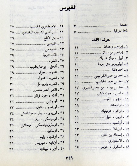 كتاب في فن التراجم، أورد فيه مصنفه 555 اسما لعلماء فن الرياضيات بالترتيب الألفبائي، حيث يذكر اسم العالم ومولده وجنسيته وعلمه في الرياضيات وزيادته التي أضافها إلى هذا العلم، وكتبه إن كان له كتب، ويذكر المراجع التي استقى منها معلوماته في آخر كل ترجمة