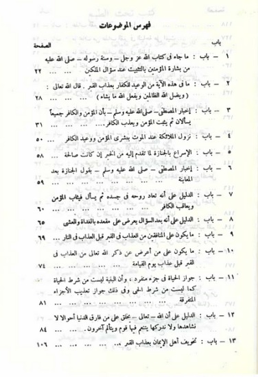 كتب مهم يثبت فيه المؤلف عذاب القبر وسؤال الملكين,ويرد على من ينكر ذلك بالأدلة القاطعة والبراهين الساطعة معتمدا على ما جاء في الكتاب والسنة.وكذلك يتضمن الكتاب .العديد من الموضوعات الهامة