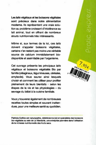 Cet ouvrage présente les principaux laits végétaux et boissons végétales Bio par famille (oléagineux, légumineuses, céréales, amylacés). Vous saurez ainsi lesquels choisir et comment les utiliser pour profiter pleinement de leurs bienfaits - selon les étapes de la vie et les physiologies - du sevrage du bébé à la cuisine familiale.