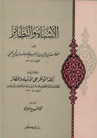 الأشباه والنظائر على مذهب أبي حنيفة النعمان هو كتاب من تأليف الإمام ابن نجيم الحنفي يعتبر من أهم كتب القواعد الفقهية على المذهب الحنفي، والكتاب مقسم إلى سبعة فنون: الأول في القواعد، وفيه: الكلام على القواعد الفقهية التي تجمع تحتها الفروع الكثيرة، والقواعد الكلية التي يتخرج عليها ما لا ينحصر من الصور الجزئية، والثاني في الفوائد، والثالث في الجمع والفرق من الأشباه والنظائر، والرابع في الألغاز الفقهية، والخامس في الأشباه والنظائر، والسادس في الحيل، والسابع في الحكايات، وقد اعتمد المصنف فيه على كتاب «الأشباه والنظائر» للإمام جلال الدين السيوطي.[1] الأشباه والنظائر على مذهب أبي حنيفة النعمان هو كتاب من تأليف الإمام ابن نجيم الحنفي يعتبر من أهم كتب القواعد الفقهية على المذهب الحنفي، والكتاب مقسم إلى سبعة فنون: الأول في القواعد، وفيه: الكلام على القواعد الفقهية التي تجمع تحتها الفروع الكثيرة، والقواعد الكلية التي يتخرج عليها ما لا ينحصر من الصور الجزئية، والثاني في الفوائد، والثالث في الجمع والفرق من الأشباه والنظائر، والرابع في الألغاز الفقهية، والخامس في الأشباه والنظائر، والسادس في الحيل، والسابع في الحكايات، وقد اعتمد المصنف فيه على كتاب «الأشباه والنظائر» للإمام جلال الدين السيوطي.[1]