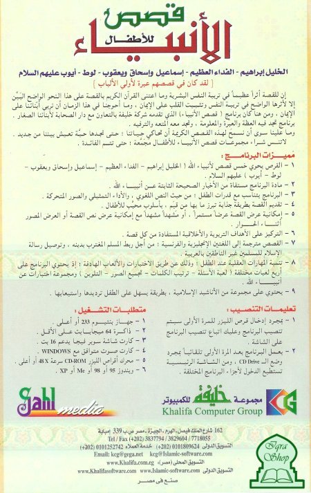 Ce cd rom contient l'histoire détaillée des Prophètes : Ibrahim (sa naissance, son peuple, le sacrifice...), Loth, Ismaël, Isaac, Yahcoub, Ayoub.