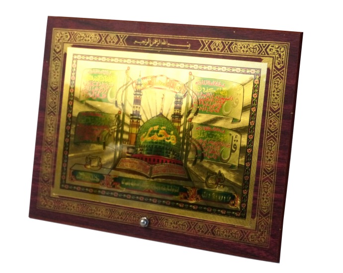 Tableau décoratif en bois doré "Mosquée avec des verset coranique".