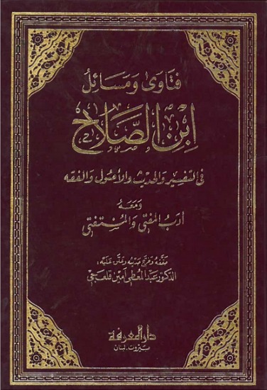 عنوان الكتاب : فتاوى ومسائل ابن الصلاح (ت 643 هـ) في التفسير والحديث والأصول والفقه