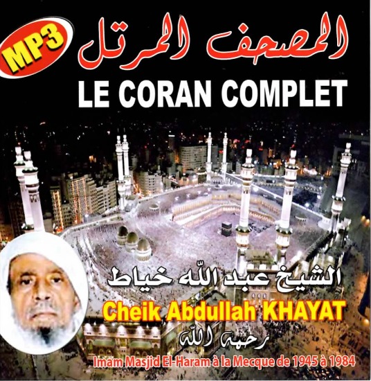 Le Coran Complet (CD MP3) par Cheikh Abdullah Khayat. Imam à la mosquée Sainte de La Mecque (Al-Masjid Al-Harâm) entre 1945 et 1984.