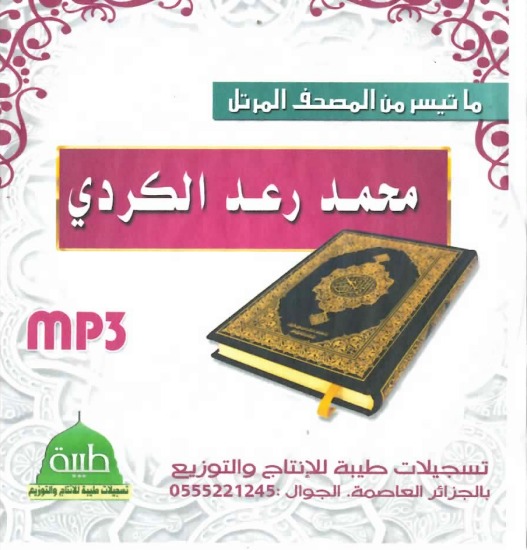Le Saint Coran récité par Cheikh Muhammad Ra'd Al-Kourdî en un CD MP3.