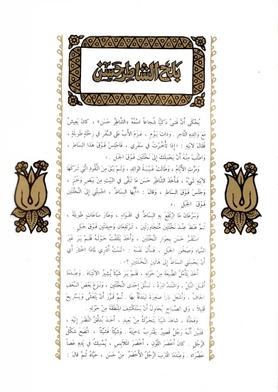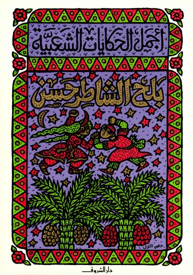 مع رسوم (حلمي التوني) ذات الأجواء التراثية الرائعة. يحكى أن فتى ذكيا شجاعا اسمه " الشاطر حسن " كان يعيش مع والده التاجر. وذات يوم، عزم الأب على السفر في رحلة طويلة، فقال لأبنه: " إذا تأخرت في سفري، فاجلس فوق هذا البساط، واطلب منه أن يحملك إلى نخلتين فوق الجبل". ومرت الأيام، وطالت غيبة الوالد، ولم يبق من النقود التي تركها لابنه شئ، فأخذ الشاطر حسن ما تبقى في البيت من بيض وخبز، وجلس فوق البساط، وقال: " أيها البساط ، احملني الى النخلتين فوق الجبل". وسرعان ما ارتفع به البساط في الهواء، وطار ساعات طويلة، ثم هبط عند نخلتين متجاورتين ، ترتفعان وحيدتين فوق الجبل.