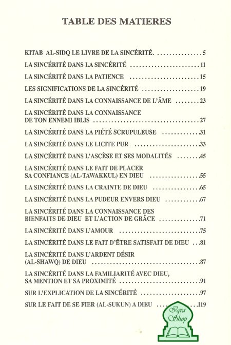 "...Sache qu'il faut pour l'aspirant, qui cherche à réaliser sa foi et qui est tenu de suivre la voie de la délivrance, connaître trois principes fondamentaux qu'il doit pratiquer et appliquer. Grâce à cela sa foi se raffermit, ses réalités deviennent effectives et ses ramifications deviennent fermes, ce qui rendra ses oeuvres pures et sincères si Dieu le veut. Le premier de ces principes, c'est la sincérité (al-ikhlas)..."