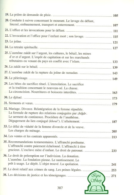 Ce livre écrit au temps de la splendeur de Kairouan, contient les connaissances de base sur l'islam et sa loi. Aide-mémoire, à l'origine, il est devenu au fil des temps une référence. L'ouvrage est en arabe et en français.