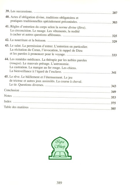 Accessoires divers - Alimentation Halal - Apprentissage anglais - Apprentissage arabe - Apprentissage français - Apprentissage langues - Art & Culture - Artisanat & décoration - Beauté, Soins naturels - Bien-être - Biographies - Calligraphie - Chants (Nachids) - Compagnons - Comprendre l'Islam - Contes & histoires - Cours & Conférences - Cuisine - Culture berbère - Da'wa (Prédication) - Dicos & encyclopédies - Divers - Dogme ('Aqîda) - Economie & finance - Education - Electronique - Enfants - Ethique - Exhortation - Femme - Fondements du droit - Hadiths - Histoire & civilisations - Histoires du Coran - Idées Cadeaux - Informatique - Initiation à l’Islam - Interprétation rêves - Invocations (dou'â) - Islam & laïcité - Islam & Occident - Islam & Sciences - Islam contemporain - Jeûne (Ramadan) - Jeunesse - Jurisprudence - Littérature & poésie - Ludoéducatif - Mariage & Couples - Monde arabe - Mystique & Soufisme - Paradis - Enfer - Mort - Pèlerinage & ‘Omra - Philosophie - Politique & Géopol. - Pratique religieuse - Prénoms - Prêt-à-porter Femmes - Prêt-à-porter Hommes - Prophètes - Religions du Livre - Revues & Guides - Roqya & protection - Saint Coran - Santé & Diététique - Sciences du Coran - Sciences du Hadith - Société & Traditions - Sounna du Prophète - Spiritualité - Tafsîr (Exégèse) - Tajwîd (Règles) - Tourisme - Vie du Prophète saw - Zakat & aumône