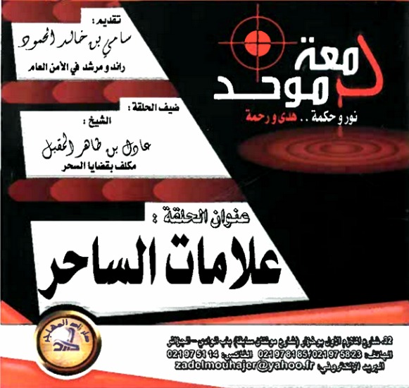 تقديم سامي بن خالد الحمود رائد و مرشد في الامن العام ضيف الحلقة الشيخ عادل بن طاهر المقبل مكلف بقضايا السحر