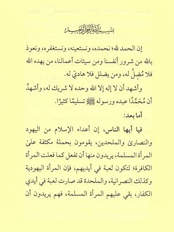 إن أعداء الإسلام من اليهود والنصارى والملحدين، يقومون بحملة مكثفة على المرأة المسلمة، يريدون منها أن تفعل كما فعلت المرأة الكافرة، لتكن لعبة في أيدي الكفار.