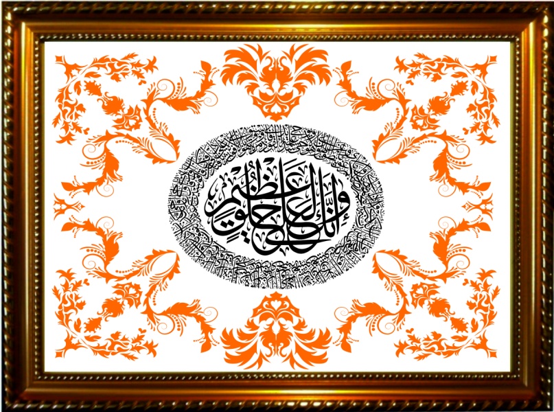 Tableau calligraphie du Verset du Trône (Ayatou-l-Koursî) - Cadre en bois avec verre - Horizontal - REF. 33306 (14.90 €)