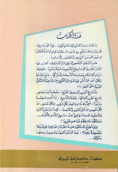 إنَّ تاريخ العرب المسلمين الحربي، مفخرة من مفاخر تاريخ الحرب العالمي، وهذا التاريخ، إذا أحسن عرضه ونشره، غنيُّ بالدروس والعبر لكل عربي ولكل مسلم، بل لكل مصنف من غير العرب والمسلمين، فلماذا يستورد العرب والمسلمون الدروس والعبر من تاريخ الأمم الأخرى ويتركون تاريخهم وراءهم ظهريا؟ وأني أطمع أن تكون حياة القادة الفاتحين عقيدة وعملا وتضحية وفداء، بعد أن لمس العرب والمسلمون روعتها وسموها.