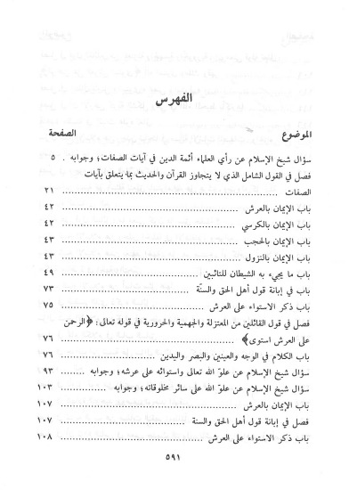 كتاب في علم العقيدة والتوحيد، وأصل الكتاب من مجموع الفتاوى للإمام ابن تيمية، ويقع في المجلدين الخامس والسادس وهو يبحث في أسماء الله تعالى وصفاته وأفعاله على طريقة ابن تيمية السلفية، ويرد فيه ابن تيمية على أهل البدع والزندقة، والفرق الضالة وقد قام المحقق بإعادة ترتيب الكتاب بصورة تجعل الإستفادة منه كبيرة حيث يجد القارىء قسما للفتاوى وقسما آخر للموضوعات المفردة في هذا الباب . وعلى الكتاب تعليقات وتخريجات مفيدة ومهمة