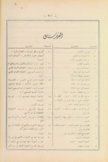 كتاب في الفقه، يبحث فيه مؤلفه في علم المواريث ويحاول فيه التسهيل على الطالب بإعطائه علم المواريث بالطرق الحسابية المعروفة لديه، وقد اختصر المؤلف شرح أصوله وبسط مسائله فأتى كتاب لا غنى للطالب عنه