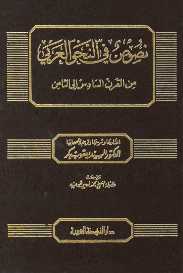 والغرض من هذا الكتاب إطلاع القارئ العربي على حقبة متأخرة من التأليف النحوي، ونذكر فيما يلي المصادر التي تم اختيار النصوص منها: المفصل للزمخشري، شرح ابن يعيش، البيان في غريب إعراب القرآن، الإنصاف في مسائل الخلاف بين النحويين البصريين والكوفيين، أسرار العربية لأبي البركان بن الأنباري، الكافية لابن الحاجب، شرح الرضي الاستراباذي، الشافية لابن الحاجب مع شرح الرضي أيضاً، الألفية لابن مالك، شرح أبي حيان الأندلسي، شرح ابن هشام، شرح ابن عقيل، ولأن شرح الأشموني من أكثر شروح الألفية تفصيلاً وأوسعها شهرة أضاف المؤلف إلى الشروح الثلاثة المذكورة، وإن كان الأشموني قد توفي في أوائل القرن العاشر.