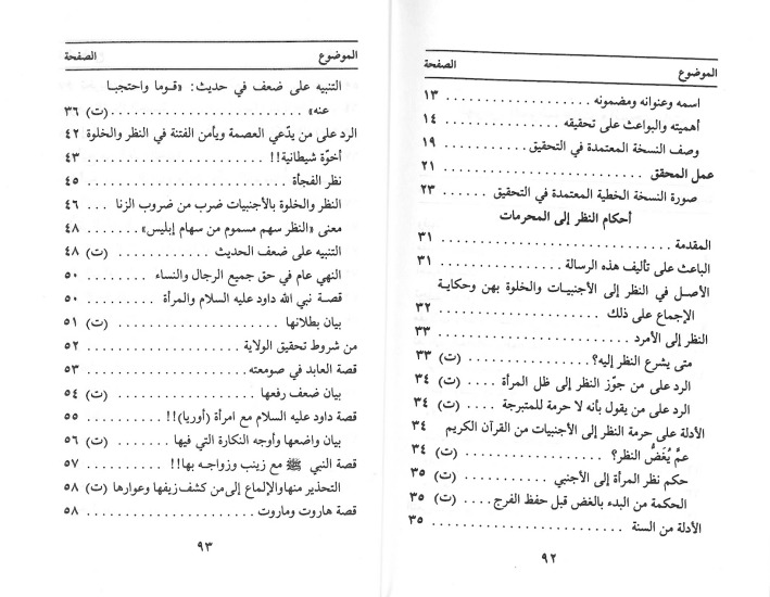 جماعة من الناس يدَّعون الصلاح والعلم ، ويقولون : لا بأس بالنظر وبالخلوة بالنساء زاعمين أن ذلك لا يضر إيمانهم وقلوبهم وصلاحهم ، هذا السؤال الذي ورد إلى الحافظ أبي بكر محمد بن عبد الله بن حبيب العامري ، فأجاب رحمه الله إجابة شافية بحكم النظر إلى المرأة والأمرد وحكم الخلوة ، وبيَّن حكم كثير من أنواع النظر ، نظر الخاطب إلى خطيبته ، والمملوك إلى سيدته ، والحر إلى الجارية ، والجار إلى جارته ، فهي رسالة شيقة في موضوعها ، حرية بالقراءة والإقتناء .
