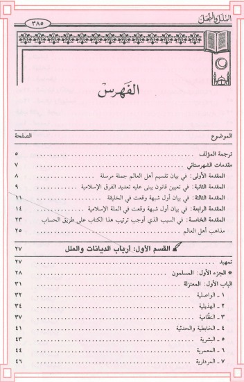 كتاب في دراسة عقائد أصحاب الملل الغير إسلامية كعباد الشمس والكواكب واليهودية والنصرانية وحكماء الهند وعبدة الأصنام وغيرها كثير ، وآراء الفرق الإسلامية ومذاهبها كالمعتزلة والجهمية والقدرية والشيعة وغيرها من الفرق الاسلامية ، وقد جاءت دراسة متعمقة في أفكار هذه العقئاد والفرق وعلى هذه الطبعة تعليقات مفيدة تخدم الموضوع .