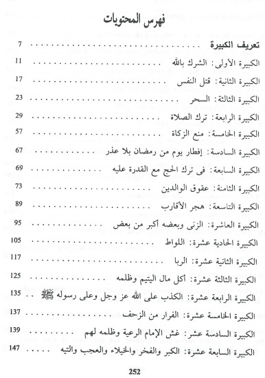 كتاب في الوعظ والارشاد مشتمل على ذكر جمل في الكبائر والمحرمات والمنهيات من الامور التي نهى الله ورسوله عنها في الكتاب والسنة والاثر عن السلف الصالحين . وقد جمع في ذلك سبعين كبيرة اولها الشرك بالله وآخرها سب احد من صحابة رسول الله صلى الله عليه وسلم