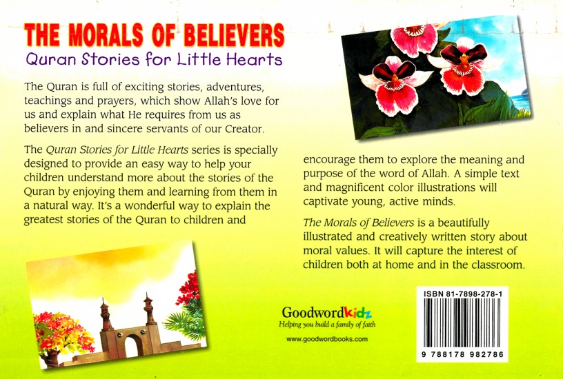 Le Coran est plein de passionnantes histoires, d’aventures, enseignements et prières, qui montrent l’amour d’Allah pour nous et expliquent ce qu’Il veut de nous en tant que croyants et sincères serviteurs de notre créateur. La morale des croyants est une histoire magnifiquement illustrée et très bien écrite pour inculquer les valeurs morales aux enfants.
