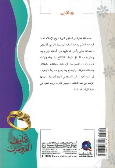 كتاب في الفقه يتضمن باقة عطرة من الفتاوى النيرة لشيخ الاسلام ابن تيمية حول احكام الزواج وما يتعلق به من احكام وما يعرض بين الزوجين من مسائل واحكام
