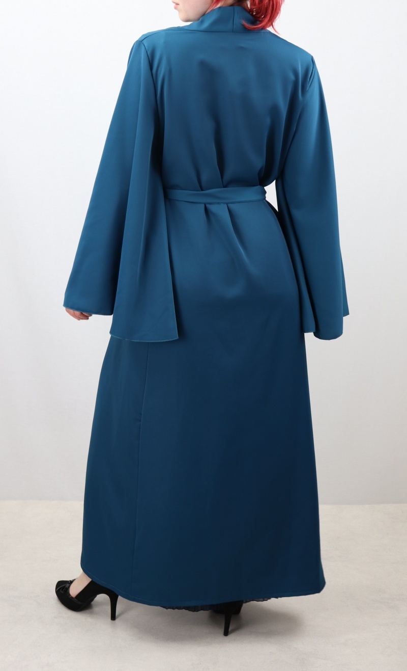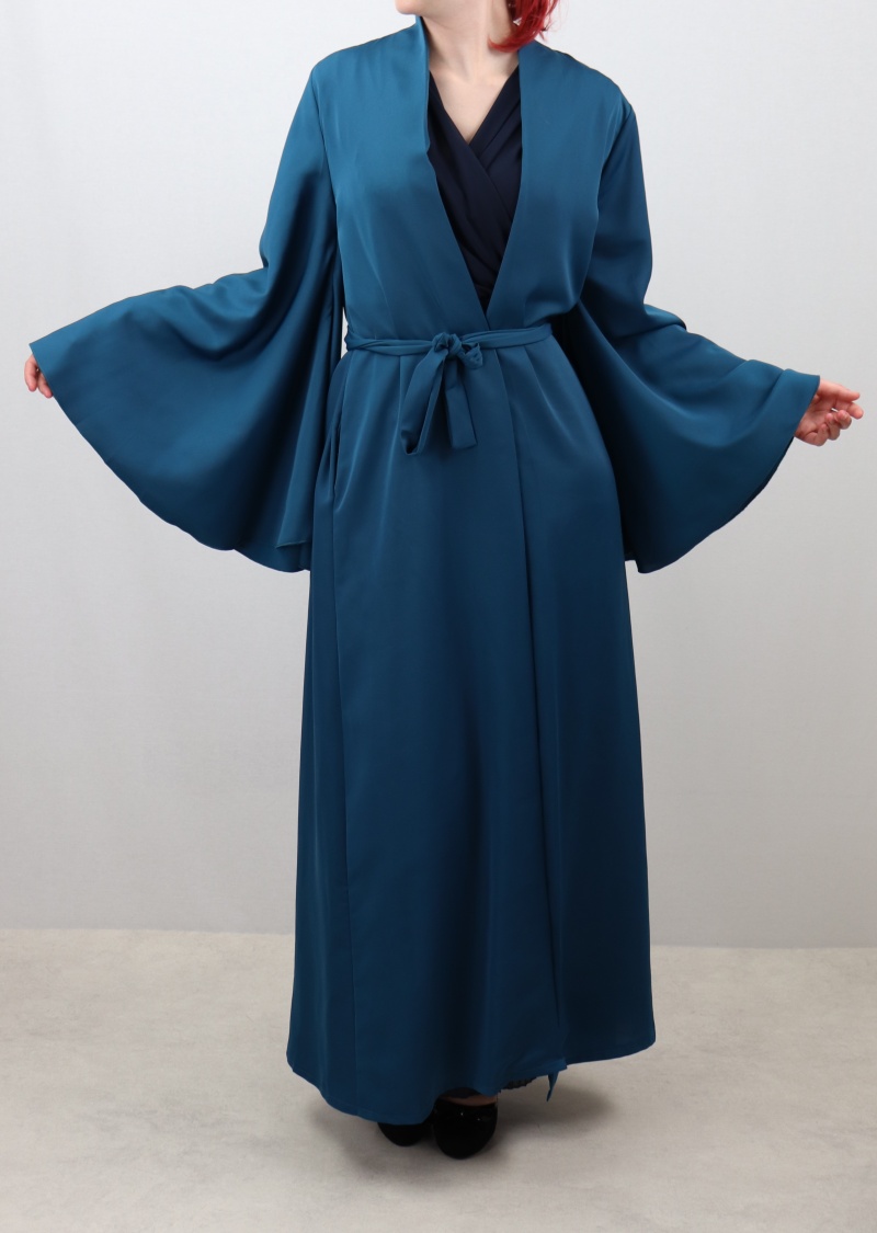 Kimono avec manches evasees de couleur bleu petrole