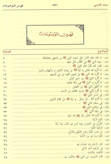 هذا المسند القيّم للحافظ عبد الله بن عبد الرحمن بن الفضل بن بهرام بن عبد الصمد الدارمي (255هـ - 869 م). وهو كتاب في الحديث، رتبه الدارمي على أبواب الفقه، وفيه أحاديث غير متعلقة بالفقه، ويعرف هذا الكتاب بمسند الدارمي، مع أنه ليس مرتباً على أسماء الصحابة، بل على الأبواب، وسماه بعض المحدثين بالصحيح .