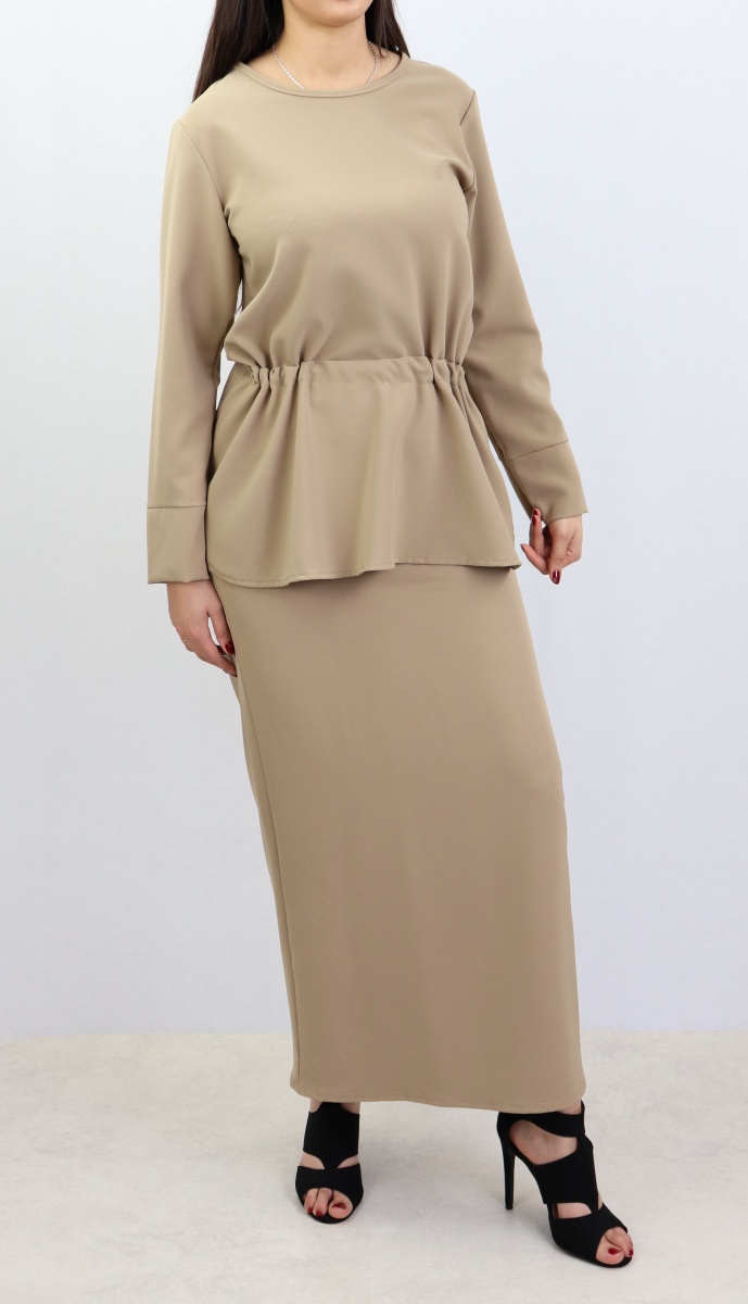 La jupe droite couvrira vos jambes jusqu'aux pieds pour plus de pudeur, alors que le haut à la taille marquée vous assurera un look distingué.