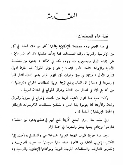 محتوى الكتاب: في هذا المعجم 986 مصطلحا يقابلها أكثر من ذلك في كل من العربية والفرنسية