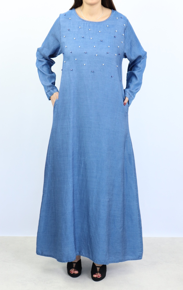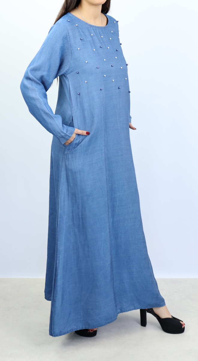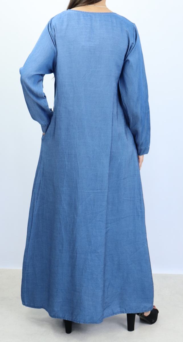 Robe orientale brodée manches longues pour femme - Couleur Bleu - REF. 37035 (29.90 €)