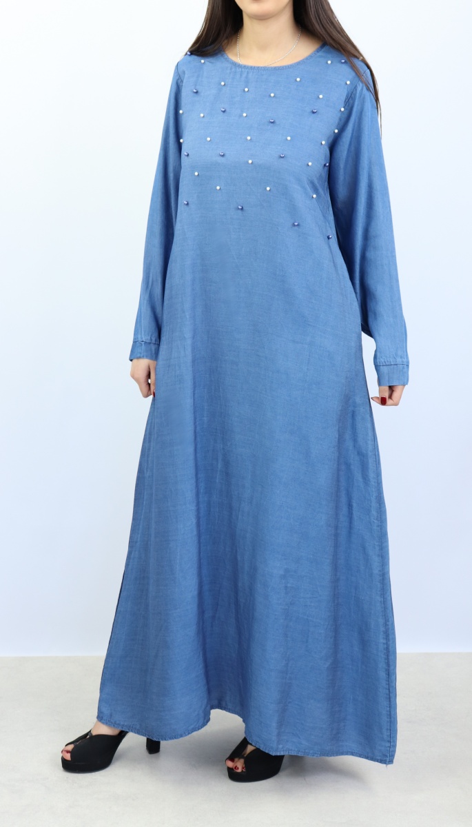 Robe Abaya Dubaï noire de qualité avec nombreuses perles noires et strass - REF. 38119 (45.00 €)