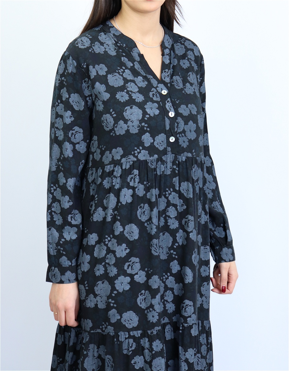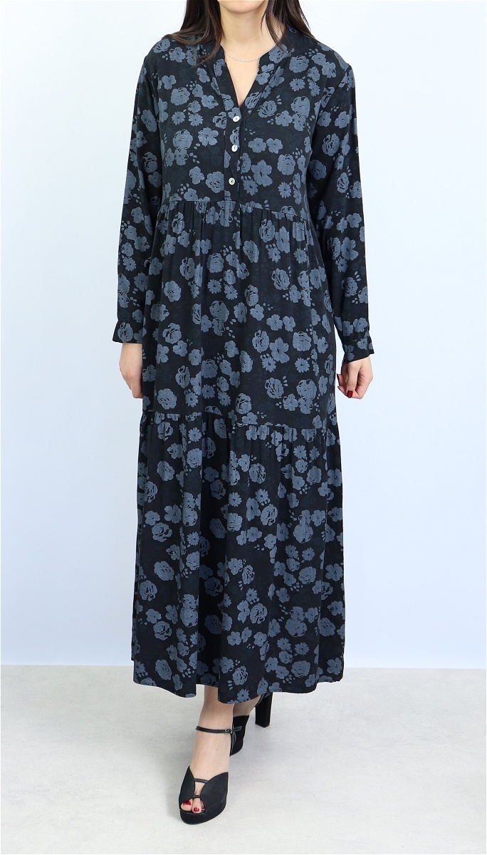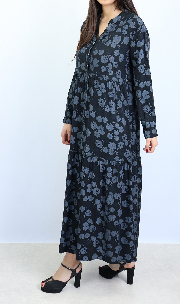 Choisissez cette longue robe noire avec motifs fleurs gris et votre corps sera conquis !