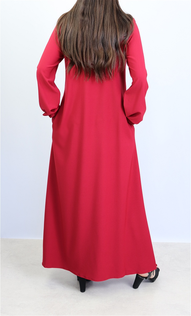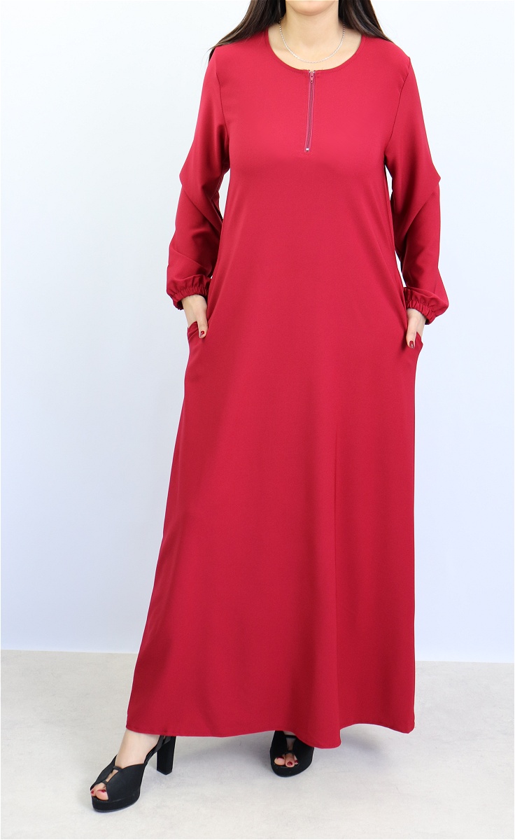 Adoptez un look chic des pieds à la tête avec cette robe à manches longues rouge absolument irrésistible. Son col rond ainsi que la fermeture zip à l'avant font d'elle une pièce contemporaine. Ses deux poches sur les côtés ont été ajoutées pour y ranger vos effets. Alors que son tissu fluide non transparent vous permet de la porter en toute saison.