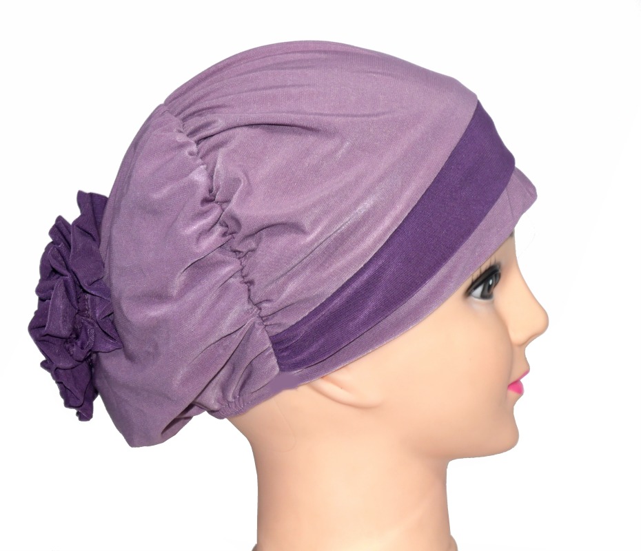 Bonnet assorti d'une bande et d'une jolie fleur - Couleur mauve Vetement & Accessoire
